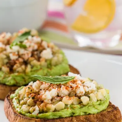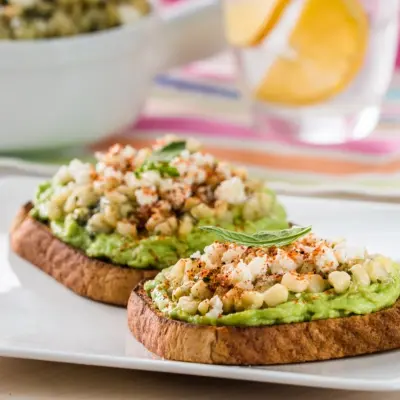 Faça este delicioso Pão Torrado com Abacate e Esquites, uma receita leve e vegetariana que você vai adorar. Para esta preparação, recomendamos fazer os esquites desde o início, assim o sabor será muito fresco e delicioso. Lembre-se de que antes de servir os esquites sobre o pão, você deve secá-los muito bem. Este Pão Torrado com Abacate e Esquites é perfeito para a vontade de um lanche no meio da manhã ou se você quiser jantar algo fácil de cozinhar e leve. Os esquites têm um toque de Tajín® clássico que dá um sabor picante e delicioso. Para que você prepararia esta receita?